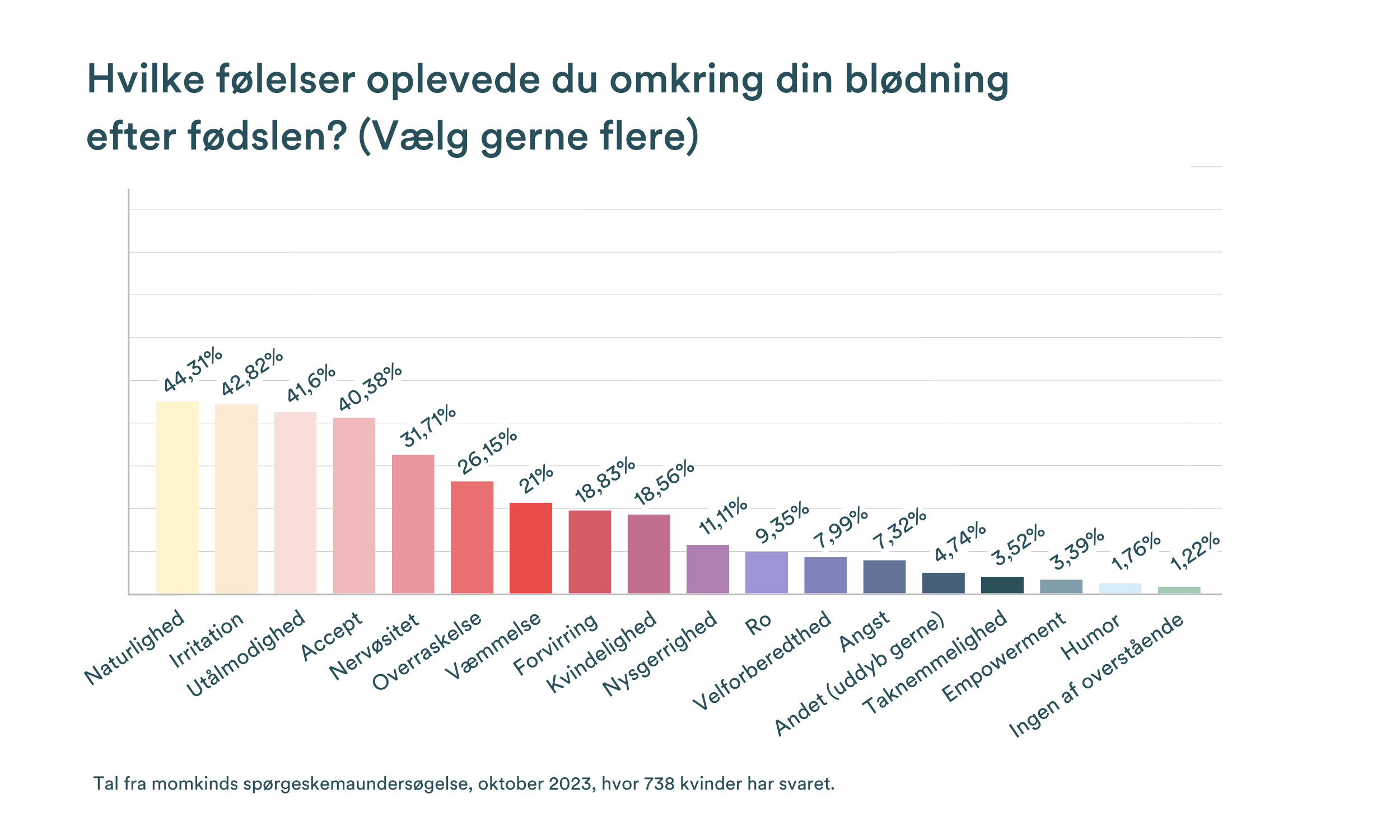 I detta sammanhang ville vi undersöka hur födande kvinnor egentligen känner inför att blöda efter förlossningen. Hos momkind är det nämligen en av våra främsta uppgifter att avmystifiera den födande kroppen och se till att ingen känner sig ensam.