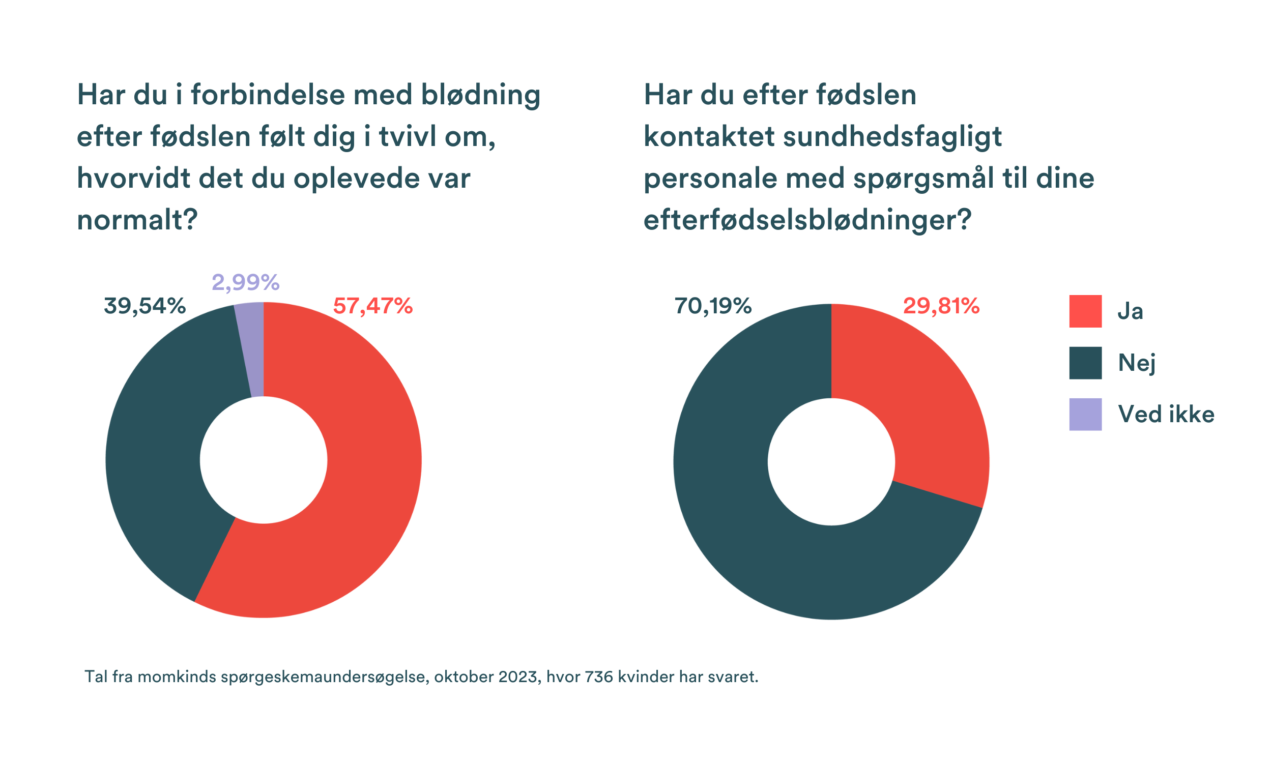Det är fallet med både graviditet, förlossning och moderskap i allmänhet, att vi kommer att uppleva tvivel och nervositet. Du är absolut inte ensam om majoriteten av dina google-sökningar inleds med “är det normalt att…” När vi i vår undersökning frågade om ni hade upplevt osäkerhet i förhållande till om era blödningar var normala, blev vi därför inte förvånade över att mer än hälften svarade 'ja'.