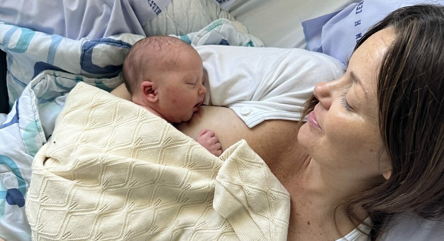 Klockan 04.00 på morgonen steg vi upp, och jag ringde förlossningsavdelningen. Klockan 05.05 anlände vi till Skejby Sjukhus och värkarna var kraftiga – jag kunde knappt stå på benen. Men redan klockan 07.32 föddes Oliver. Det var helt otroligt. Nu var jag plötsligt tvåbarnsmamma utan att känna mig redo. Men jag skulle säkert växa in i rollen. Nu var han här, fullkomligt perfekt och alldeles ljuvlig! Vi åkte hem redan 2,5 timme efter födseln. Allting fungerade som det skulle, vilken lättnad. Jag längtade efter att komma hem till Mikki.