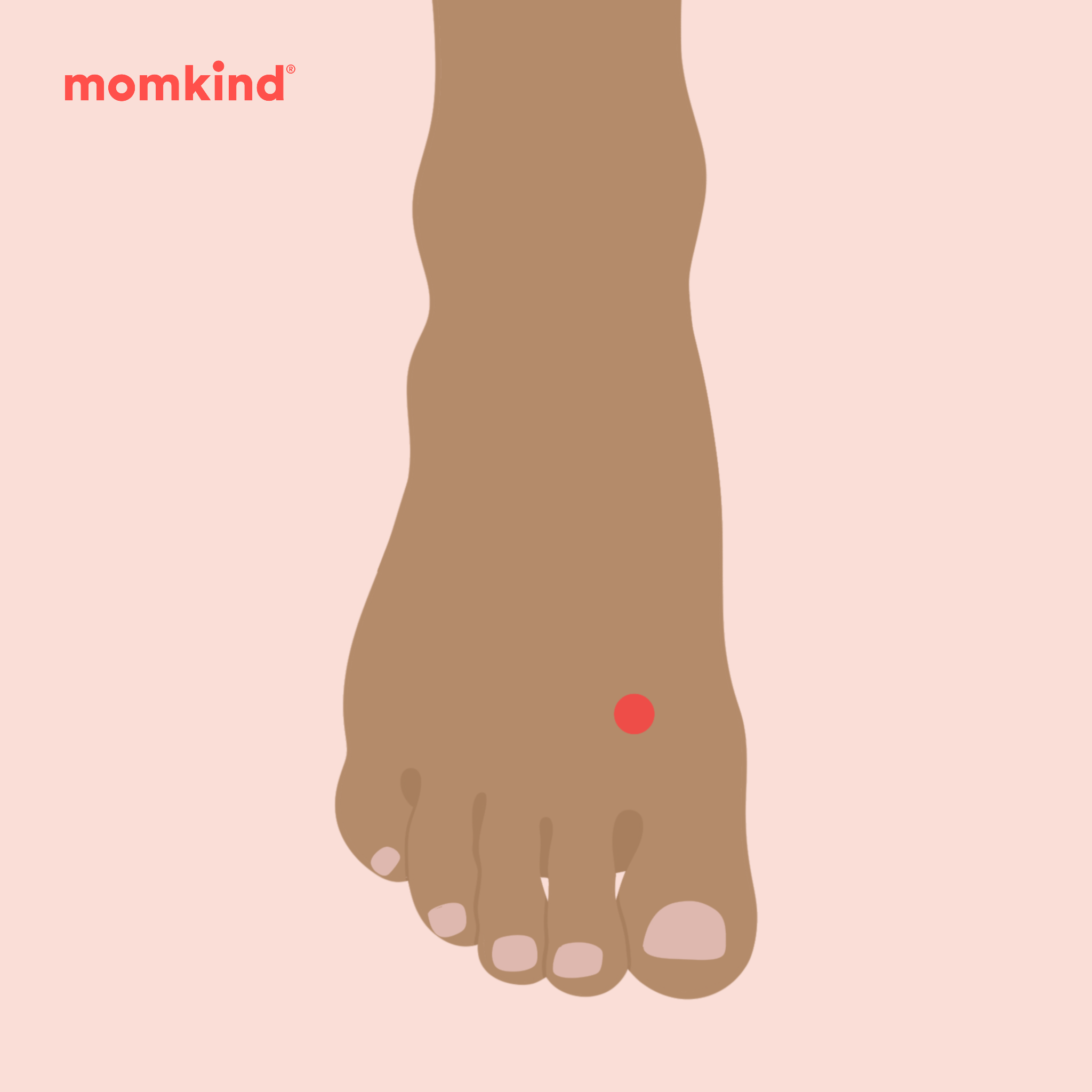 Punkten, som också kallas Lever 3, är utmärkt för avslappning och för att skapa känslomässig balans. Den finns på ovansidan av varje fot, i vävnaden mellan stortån och tån bredvid. Dra fingret uppåt från tån tills du når första benet. Håll trycket i cirka 2 minuter.