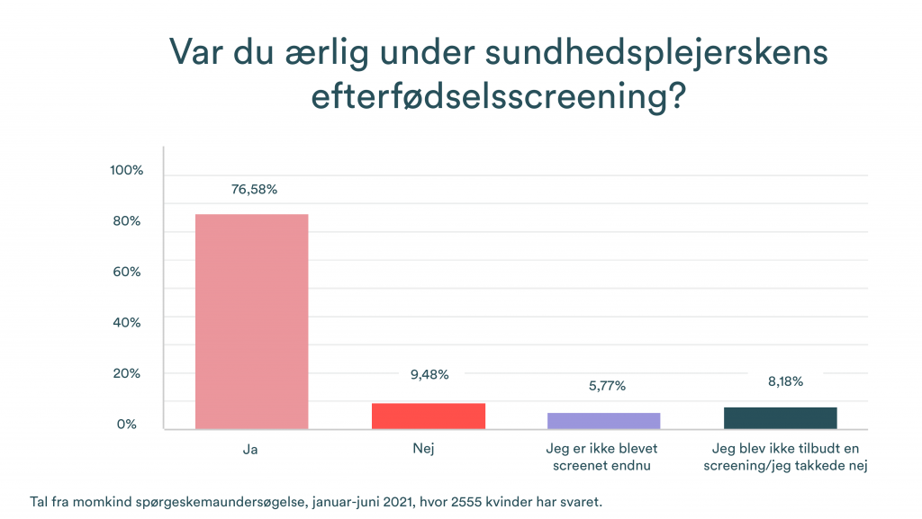 Vi finner det oroande att omkring 10% av momkind-undersökningens 2200 respondenter inte har känt sig trygga med att svara ärligt vid sin efterfödelseskontroll. Som du kan läsa är anledningarna många, och det skulle vara intressant att se hur de skulle fördela sig om urvalet var större.