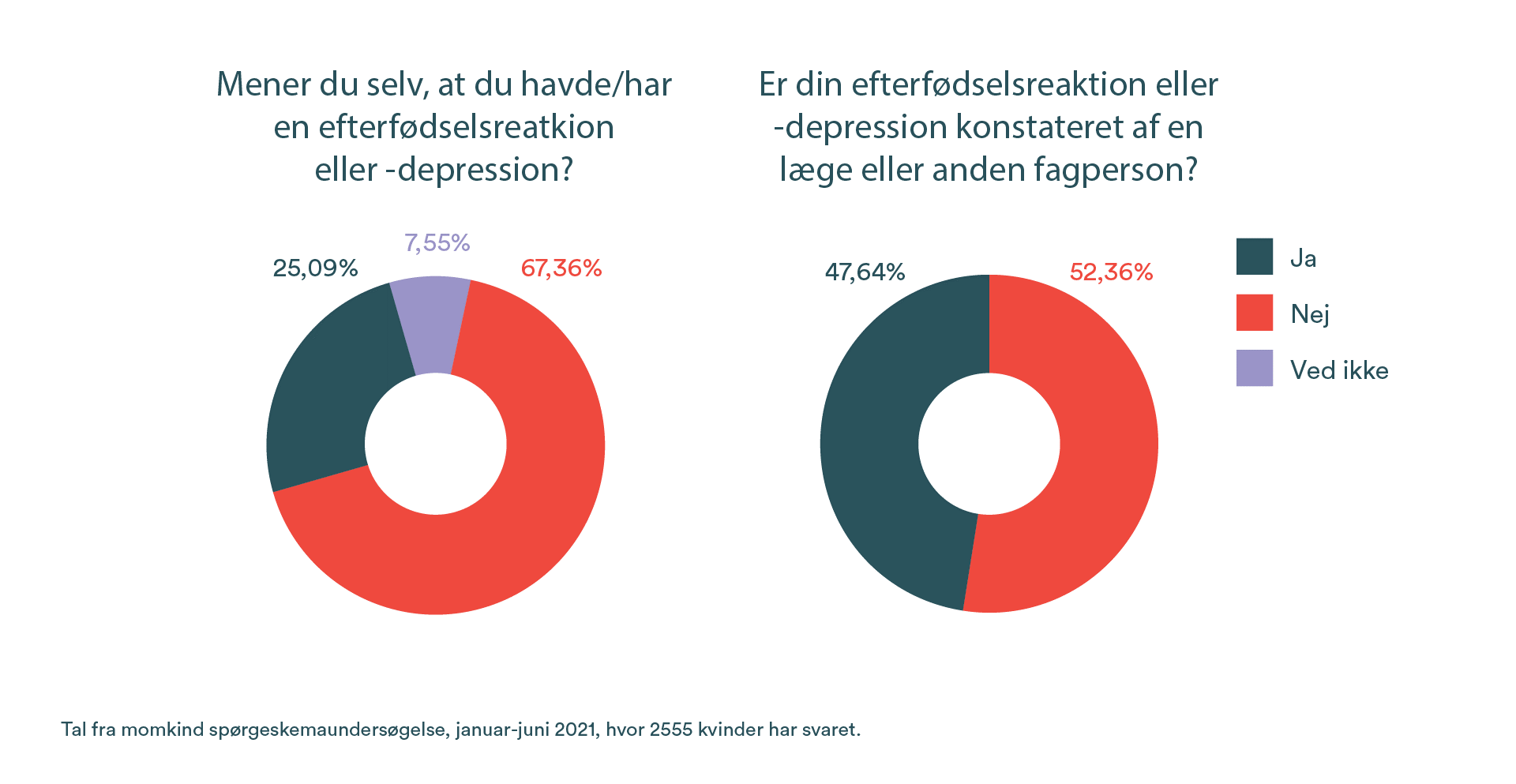 I momkinds enkätundersökning, som besvarades av 2555 kvinnor under januari-juni 2021, lades det bland annat fokus på den nyblivna mammans mentala välmående. Även om vi visste att statistiken för reaktioner efter förlossningen döljer mörkertal, blev vi ändå överraskade av svaren på följande fråga: