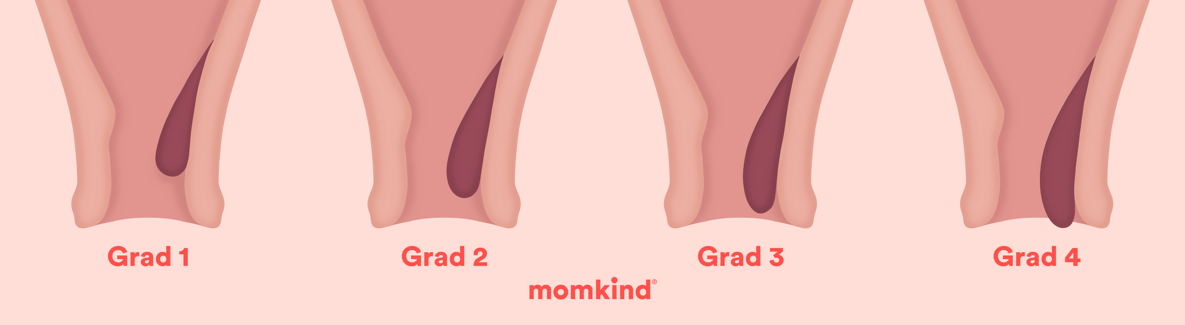 - Grad 1: Helt inre och ger kanske bara lite blödning.